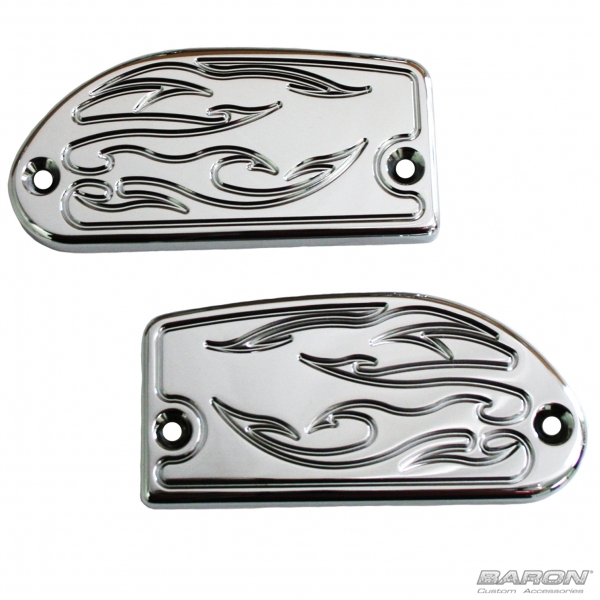 MASTER CYLINDER COVERS - FLAME, CHROME - Road/Stratoliner and Raider